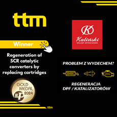 The method of regenerating SCR catalytic converters by replacing cartridges used by Kaliński is a unique solution. Replacement of the cartridge restores the efficiency of the catalytic converter in a cheaper way than a purchase of a new product. The regeneration process uses already existing elements, taking care of our environment. In 2023, the Kaliński company's service won the Gold Medal of the Ekotech 2023 Fair and became the Product of the Year according to the autoEXPERT magazine.